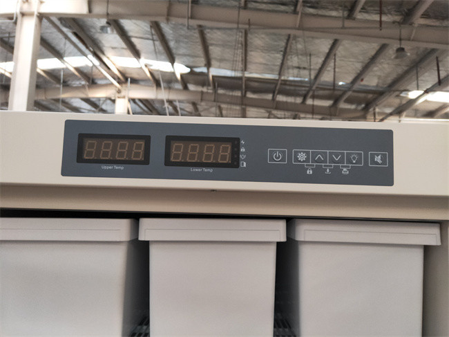 Kapasitas 528 Liter Kabinet Kulkas Freezer Vaksin Biomedis Berdiri Tegak dengan Ruang Independen Ganda